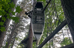 The majority of the camp property is on lightly rolling terrain. There is short hill down down to the lake only accessible by foot or all terrain wheelchair with support.